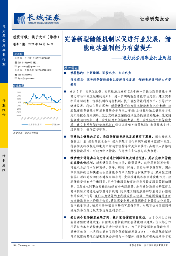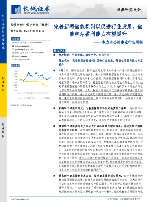 【长城证券】【20220614】完善新型储能机制以促进行业发展,储能电站盈利能力有望提升-13页