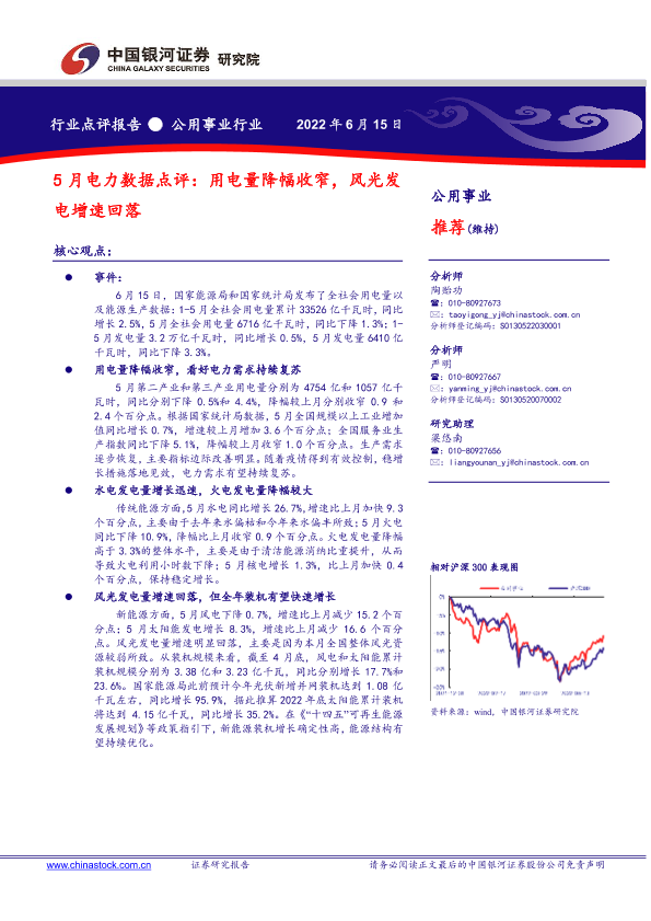 【银河证券】【20220615】5月电力数据点评:用电量降幅收窄,风光发电增速回落-3页
