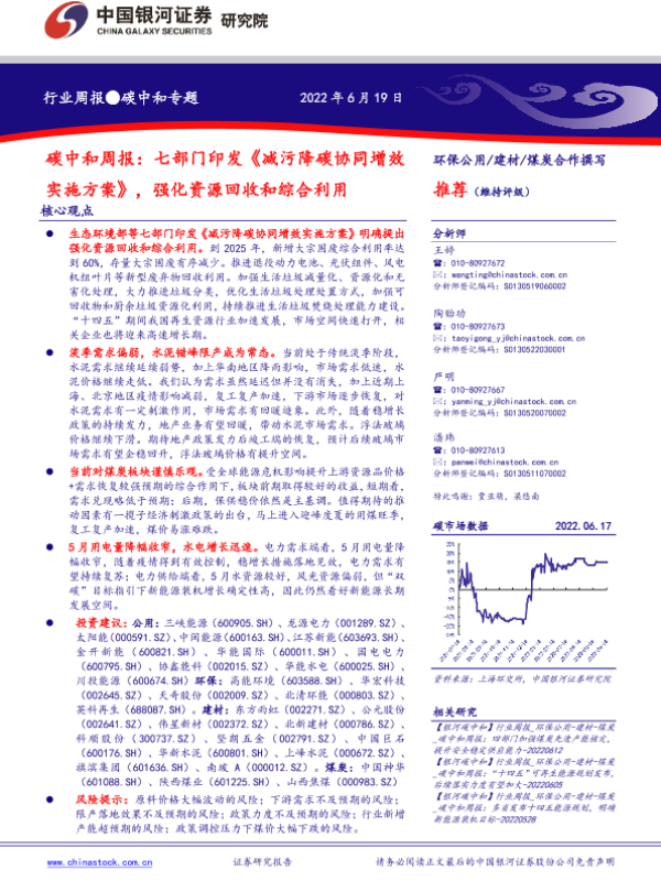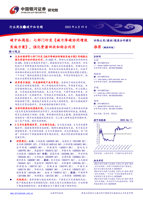 【银河证券】【20220619】碳中和周报:七部门印发《减污降碳协同增效实施方案》,强化资源回收和综合利用-21页