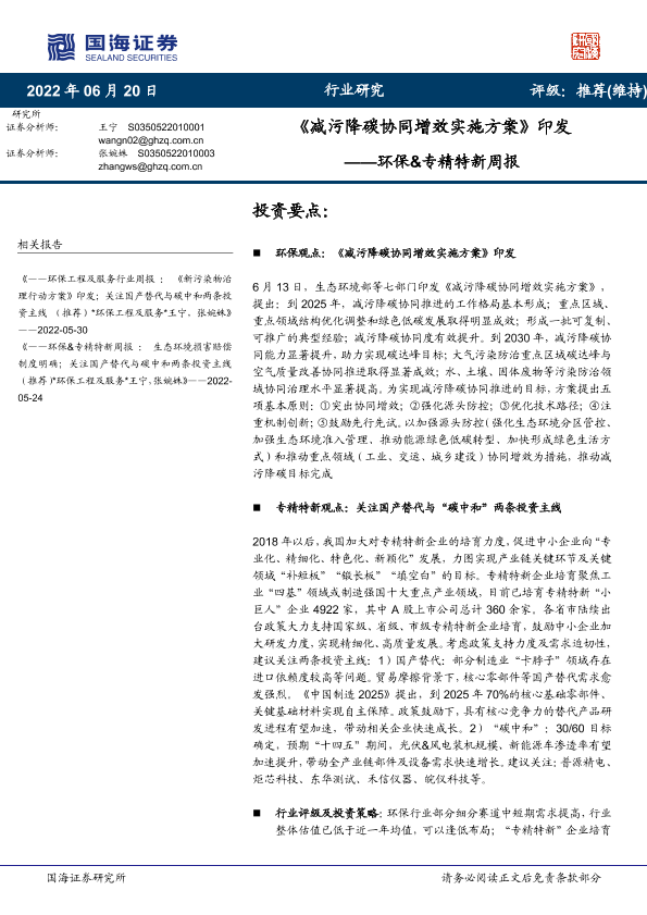 【国海证券】【20220620】减污降碳协同增效实施方案印发-14页