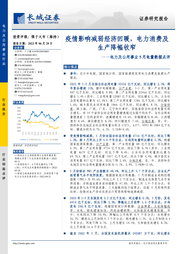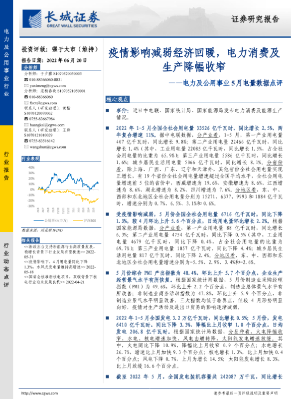 【长城证券】【20220620】电力及公用事业5月电量数据点评-3页