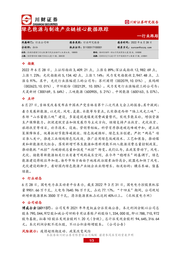【川财证券】【20220628】绿色能源与制造产业链核心数据跟踪-3页
