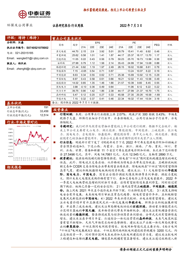 【中泰证券】【20220703】环保及公用事业行业周报:抽水蓄能建设提速,相关上市公司投资主体众多-22页