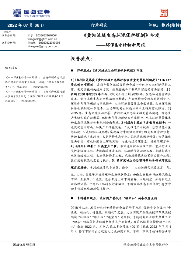 【国海证券】【20220706】黄河流域生态环境保护规划印发-15页