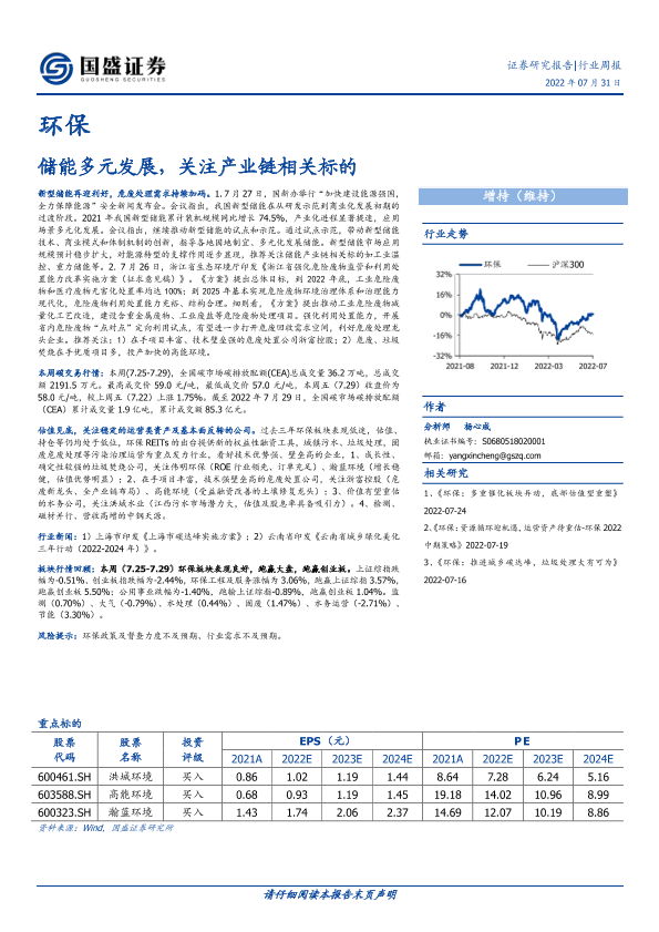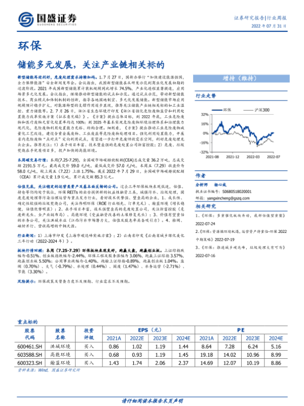 【国盛证券】【20220731】环保行业周报:储能多元发展,关注产业链相关标的-14页