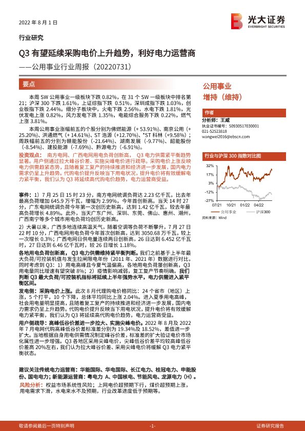 【光大证券】【20220801】Q3有望延续采购电价上升趋势,利好电力运营商-9页