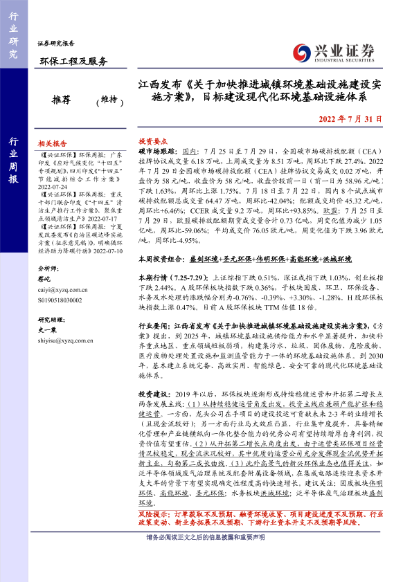 基础设施建设 政策文件 江西省 环保工程 碳市场