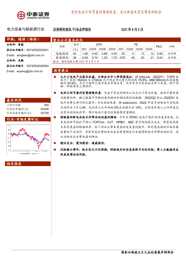 【中泰证券】【20220805】电力设备与新能源行业:光伏电池片环节盈利持续改善,关注新技术变化带来的机会-5页