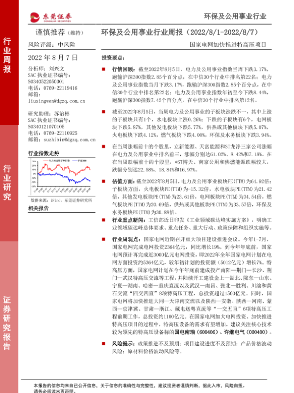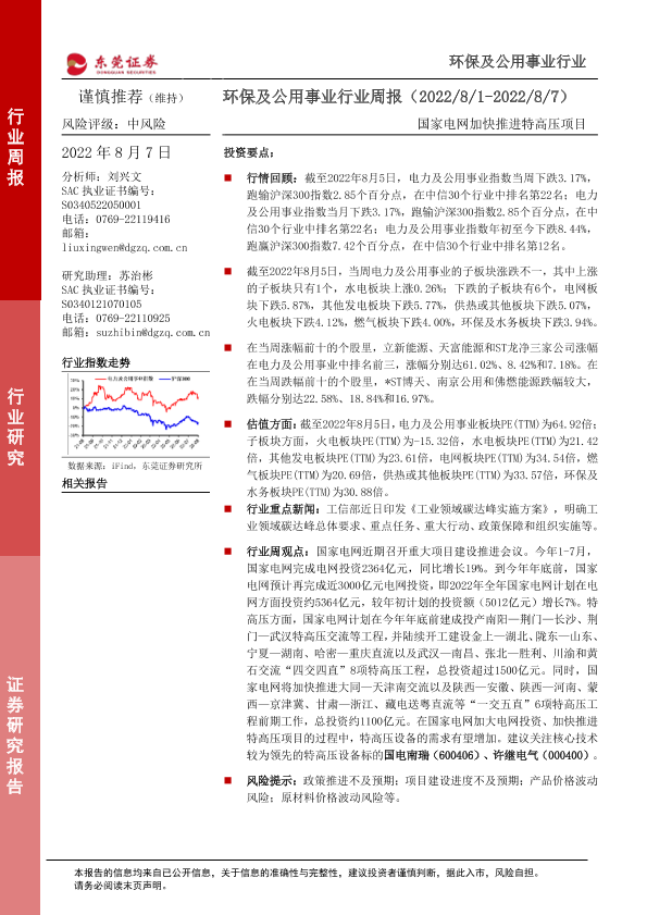 【东莞证券】【20220807】环保及公用事业行业周报:国家电网加快推进特高压项目-11页