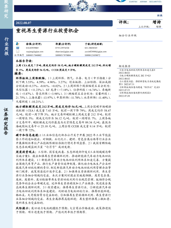 【国泰君安证券】【20220807】重视再生资源行业投资机会-7页