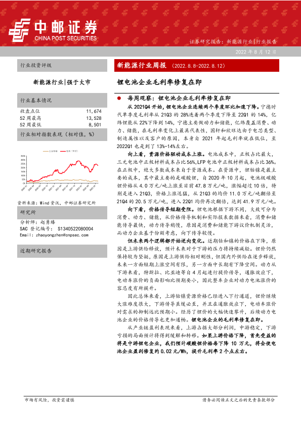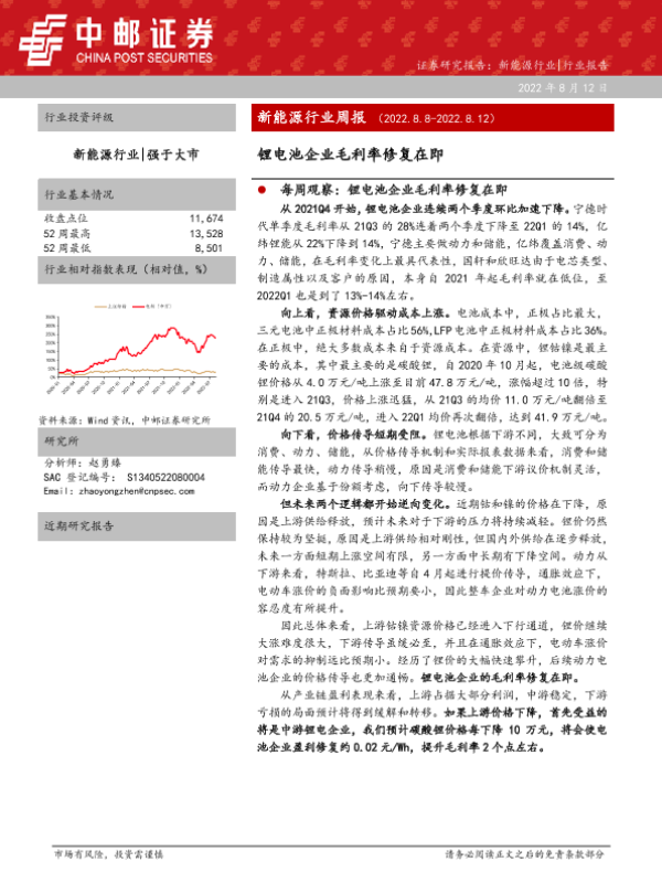 【中邮证券】【20220812】新能源行业周报:锂电池企业毛利率修复在即-42页