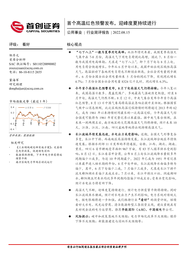 【首创证券】【20220815】首个高温红色预警发布,迎峰度夏持续进行-12页