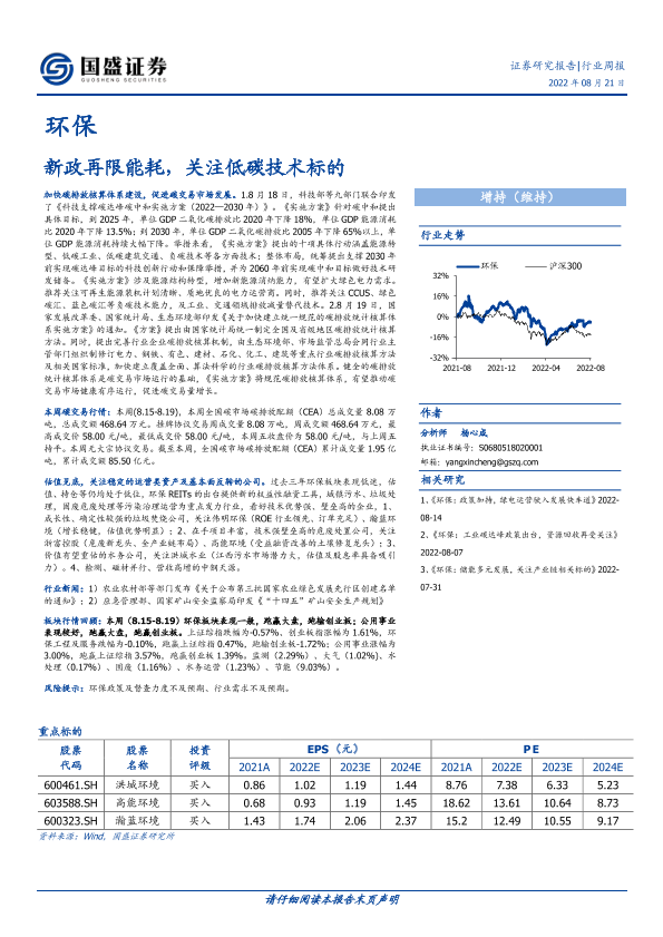 【国盛证券】【20220821】环保行业周报:新政再限能耗,关注低碳技术标的-14页
