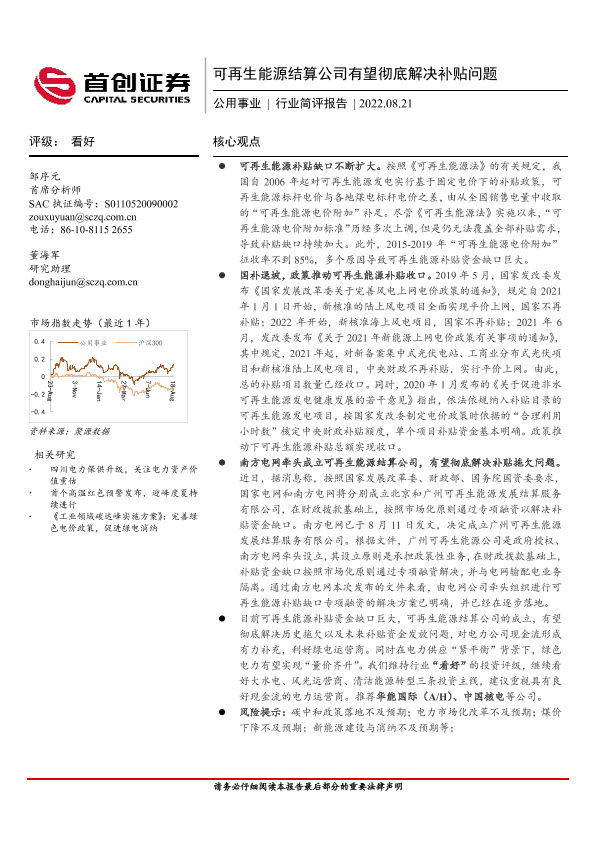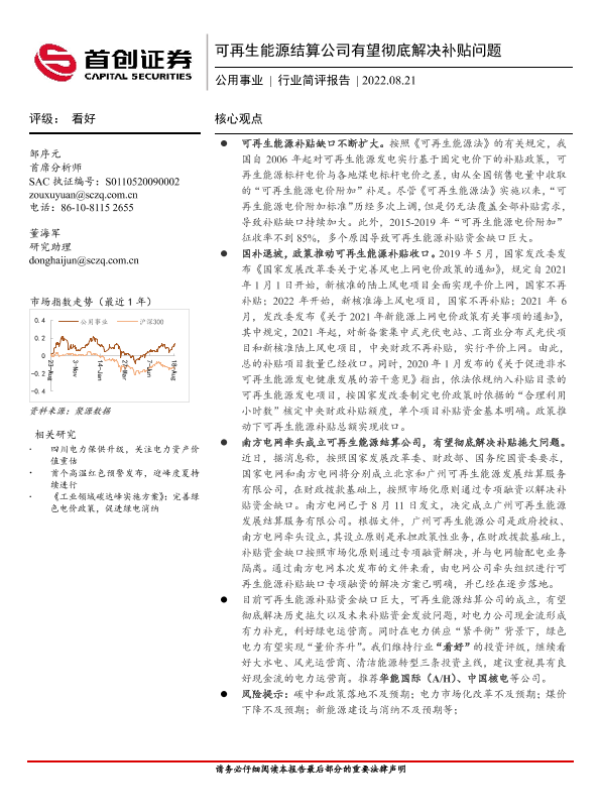 【首创证券】【20220821】可再生能源结算公司有望彻底解决补贴问题-12页
