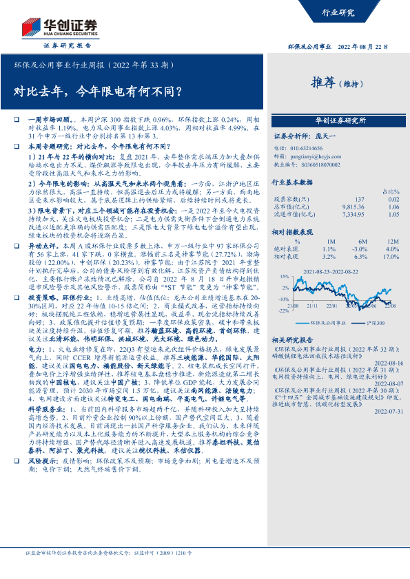 华创证券 电力热力燃气水生产 2022年 PDF 2.24 MB