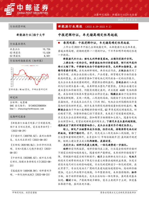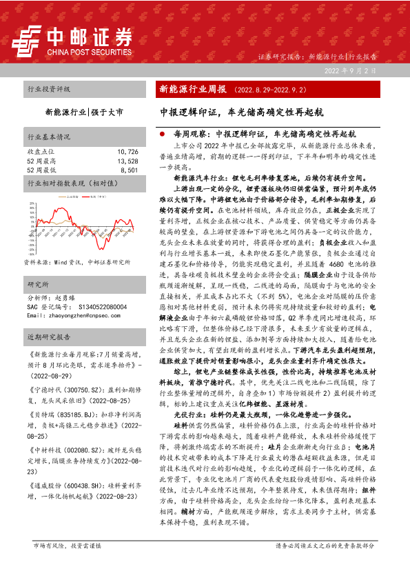 【中邮证券】【20220902】新能源行业中报逻辑印证,车光储高确定性再起航-36页