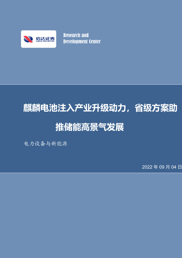 【信达证券】【20220904】麒麟电池注入产业升级动力,省级方案助推储能高景气发展-10页