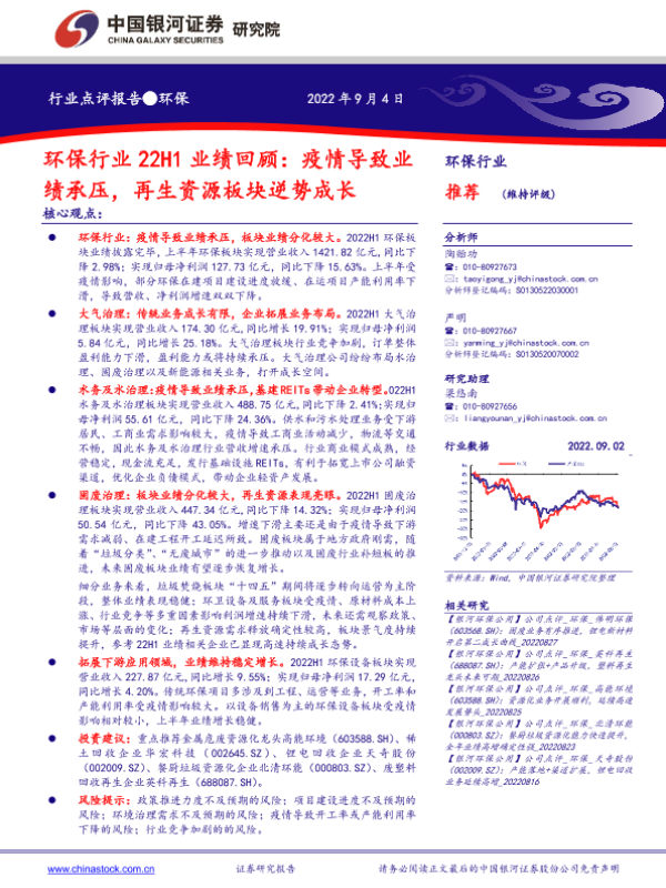 【银河证券】【20220904】环保行业22H1业绩回顾:疫情导致业绩承压,再生资源板块逆势成长-17页
