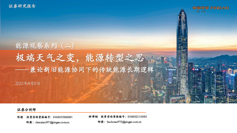 【平安证券】【20220906】能源观察系列(二):兼论新旧能源协同下的传统能源长期逻辑-46页