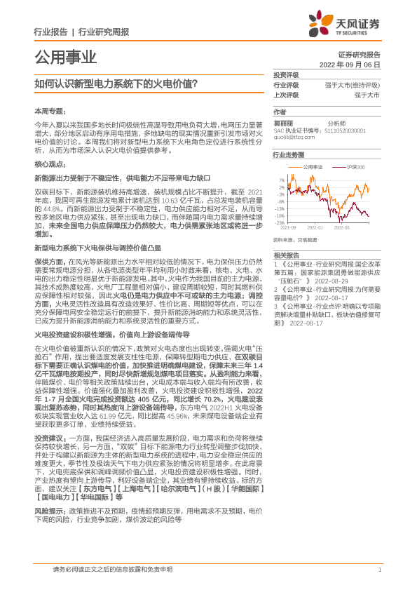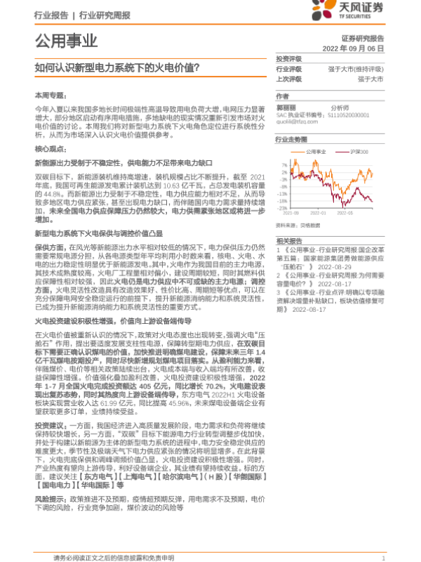 【天风证券】【20220906】如何认识新型电力系统下的火电价值-16页