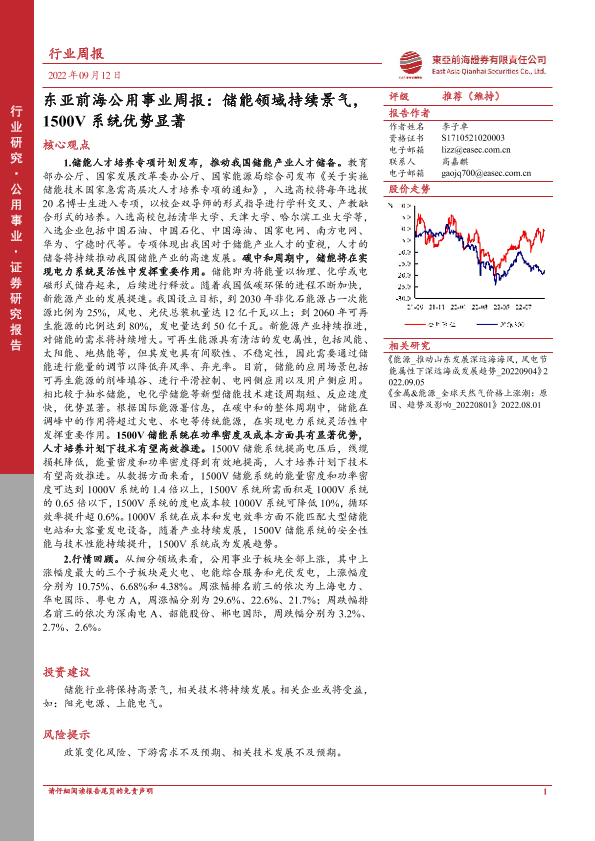 【东亚前海证券】【20220912】东亚前海公用事业周报:储能领域持续景气,1500V系统优势显著-13页
