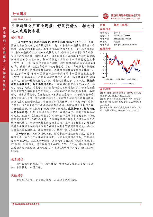 【东亚前海证券】【20220918】公用事业周报:好风凭借力,核电将迈入发展快车道-13页