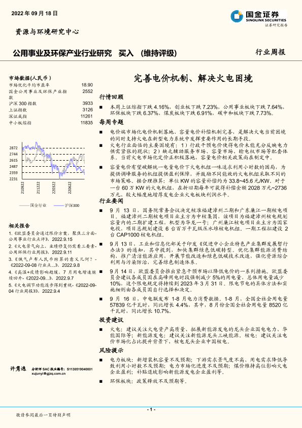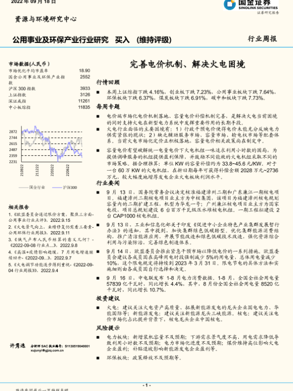 【国金证券】【20220918】完善电价机制、解决火电困境-14页