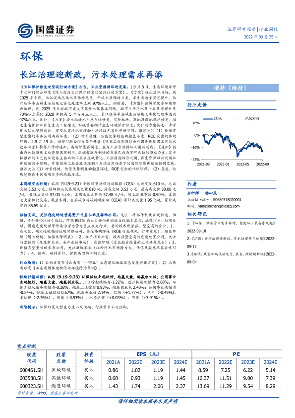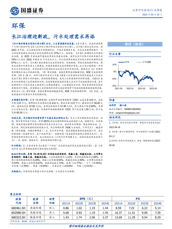 【国盛证券】【20220925】环保行业周报:长江治理迎新政,污水处理需求再添-15页