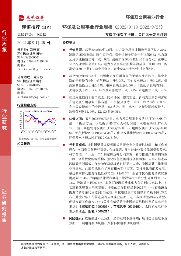 【东莞证券】【20220925】环保及公用事业行业周报:双碳工作有序推进,关注风光发电领域-12页
