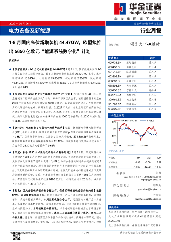 【华金证券】【20220926】电力设备及新能源行业周报-10页