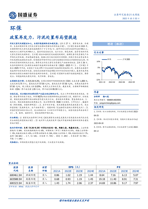 【国盛证券】【20221003】环保行业周报:政策再发力,污泥处置布局望提速-16页