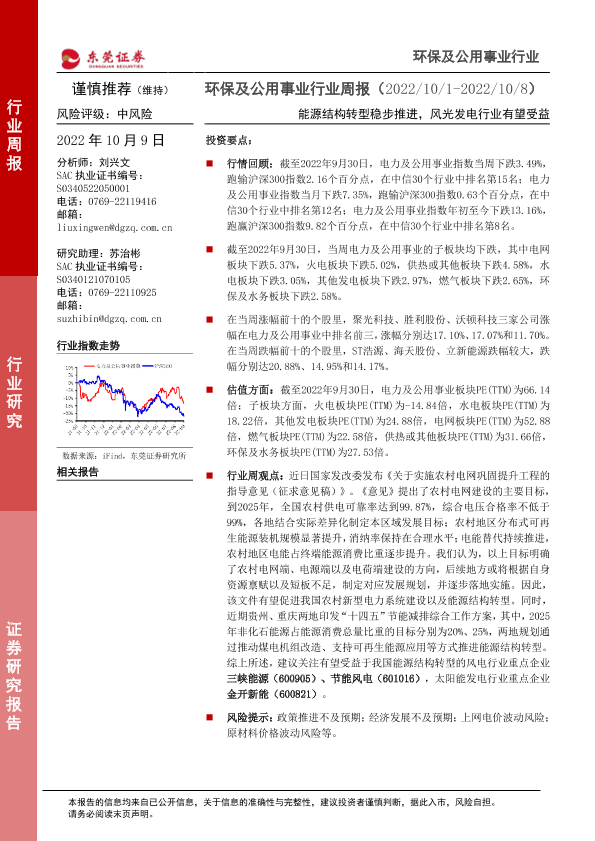【东莞证券】【20221009】环保及公用事业行业周报:能源结构转型稳步推进,风光发电行业有望受益-12页