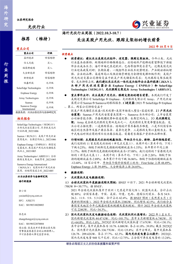 【兴业证券】【20221009】海外光伏行业周报:关注美股户用光伏、跟踪支架标的增长前景-28页
