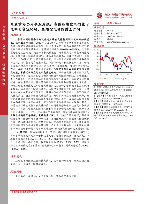 【东亚前海证券】【20221010】东亚前海公用事业周报:我国压缩空气储能示范项目实现突破,压缩空气储能前景广阔-14页