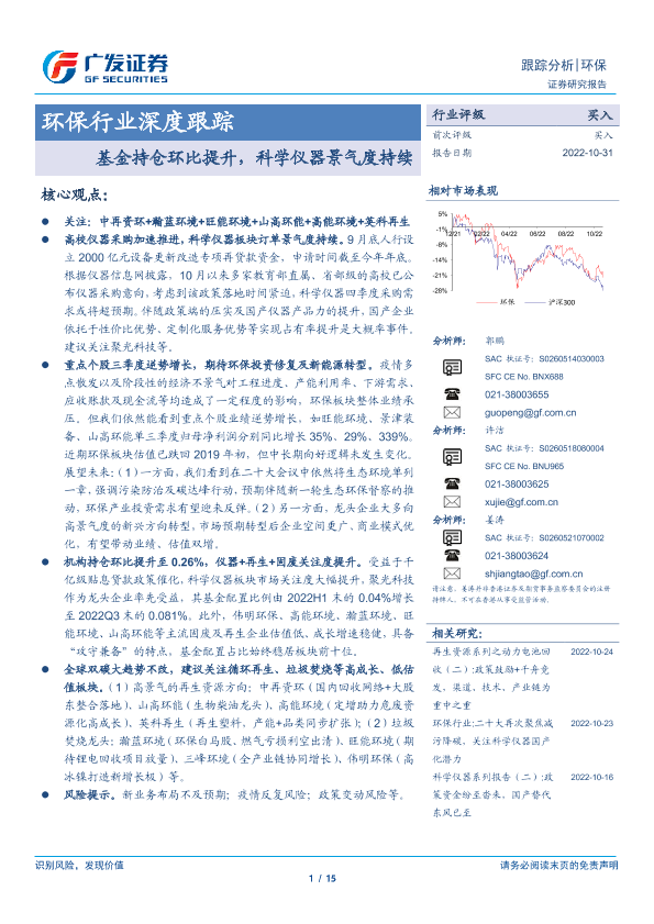 【广发证券】【20221031】环保行业深度跟踪:基金持仓环比提升,科学仪器景气度持续-15页