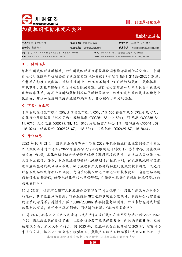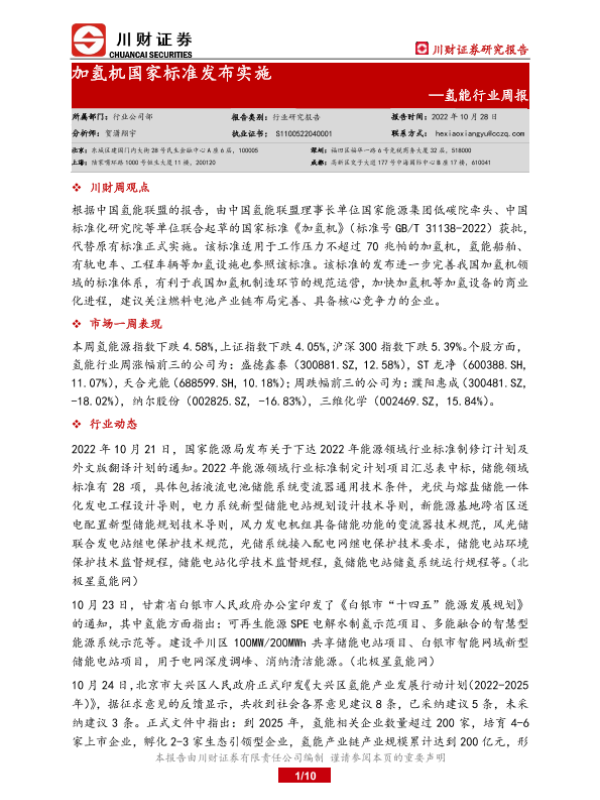 【川财证券】【20221028】氢能行业周报:加氢机国家标准发布实施-10页