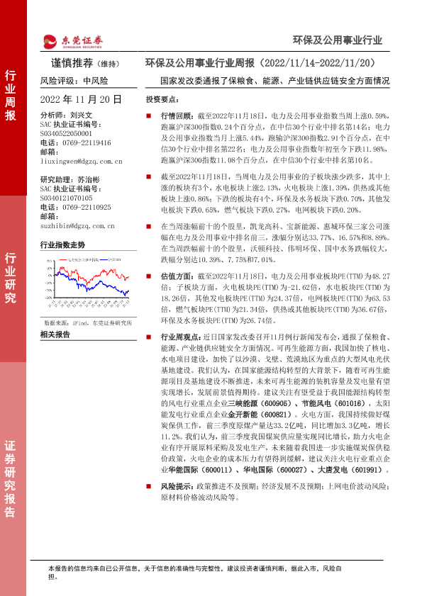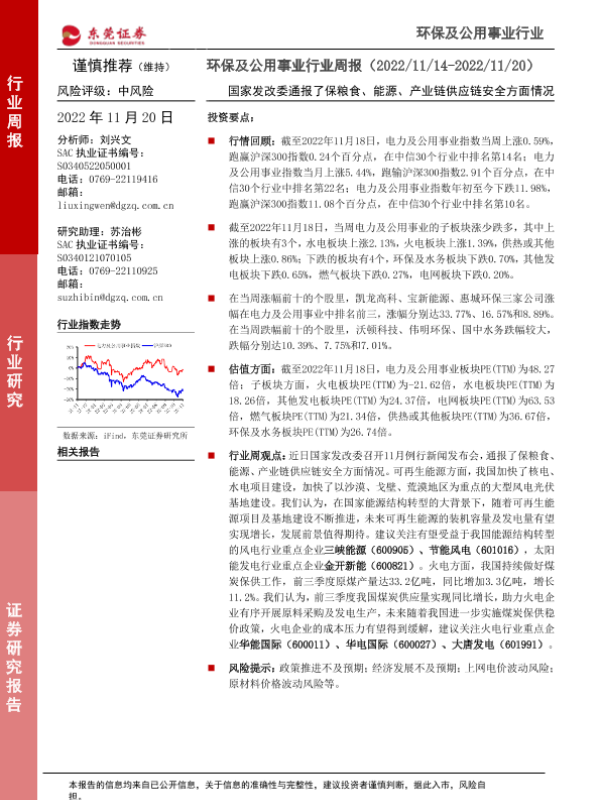 【东莞证券】【20221120】环保及公用事业行业周报:国家发改委通报了保粮食、能源、产业链供应链安全方面情况-12页