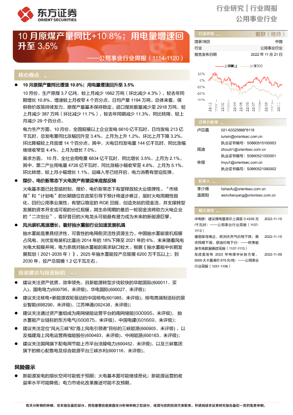 【东方证券】【20221121】10月原煤产量同比+10.8%;用电量增速回升至3.5%-17页