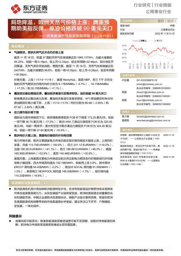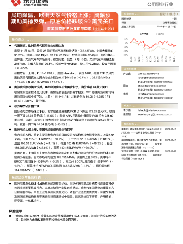 【东方证券】【20221121】公用事业行业欧美能源市场数据跟踪周报-13页