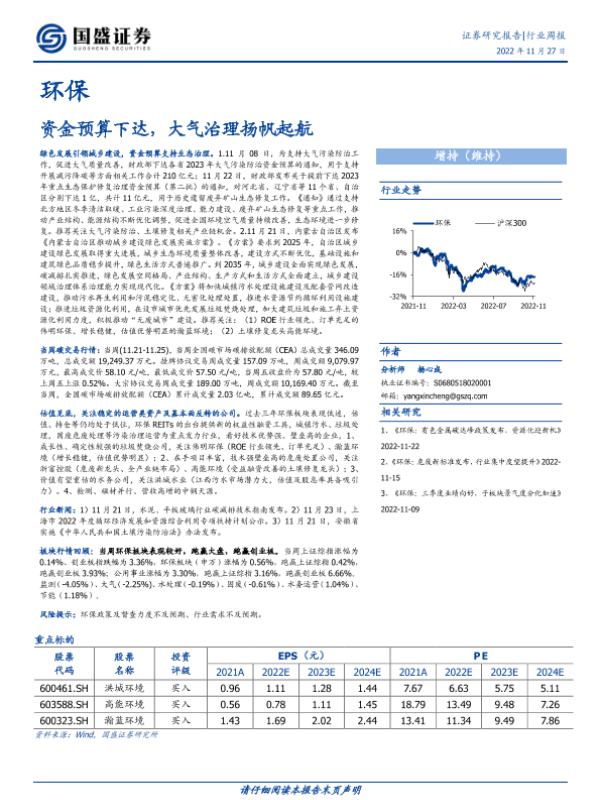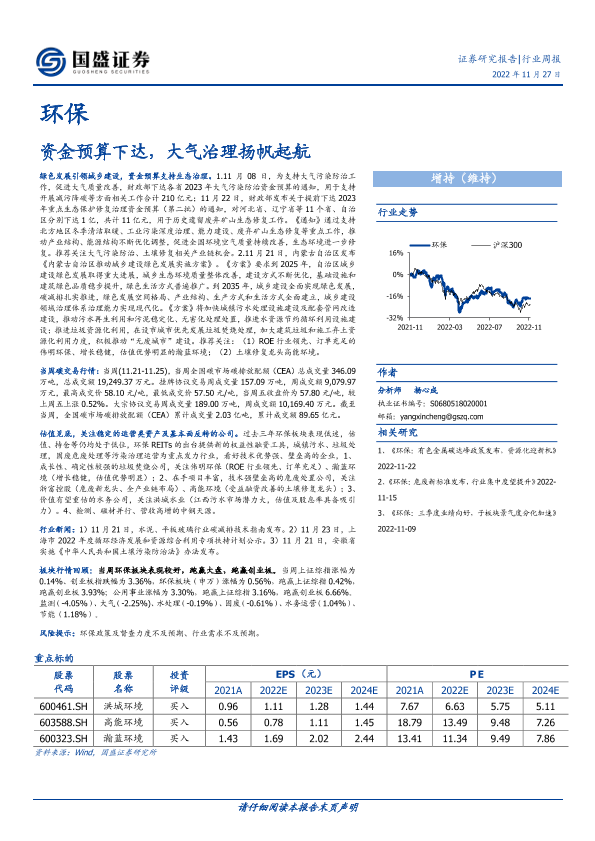 【国盛证券】【20221127】环保行业周报:资金预算下达,大气治理扬帆起航-11页