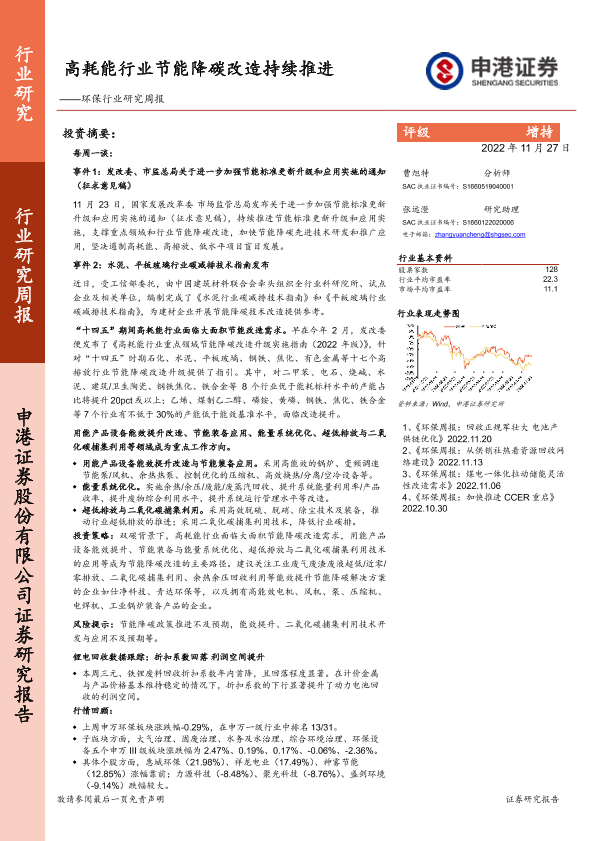 【申港证券】【20221127】高耗能行业节能降碳改造持续推进-12页