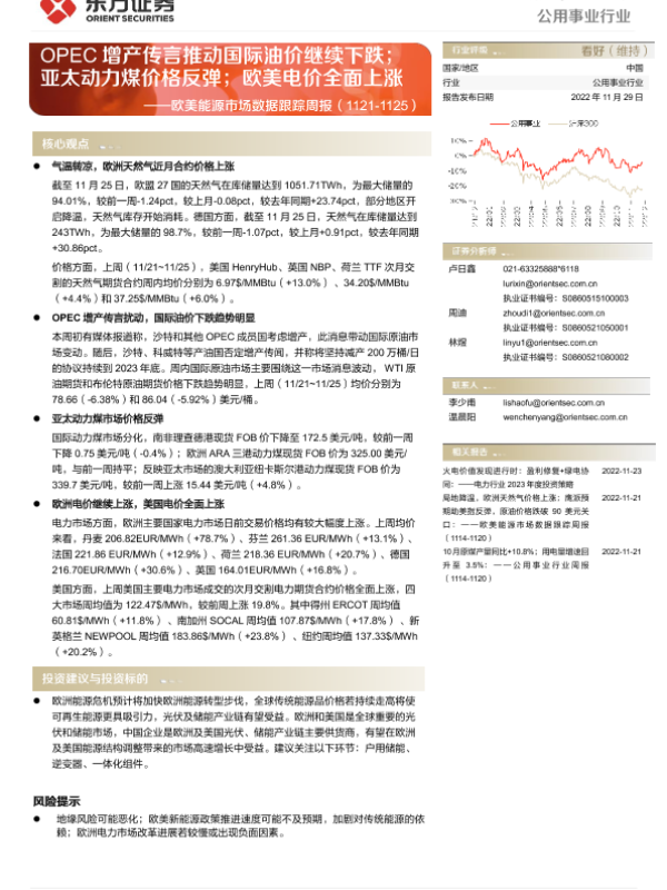 【东方证券】【20221129】欧美能源市场数据跟踪周报-13页