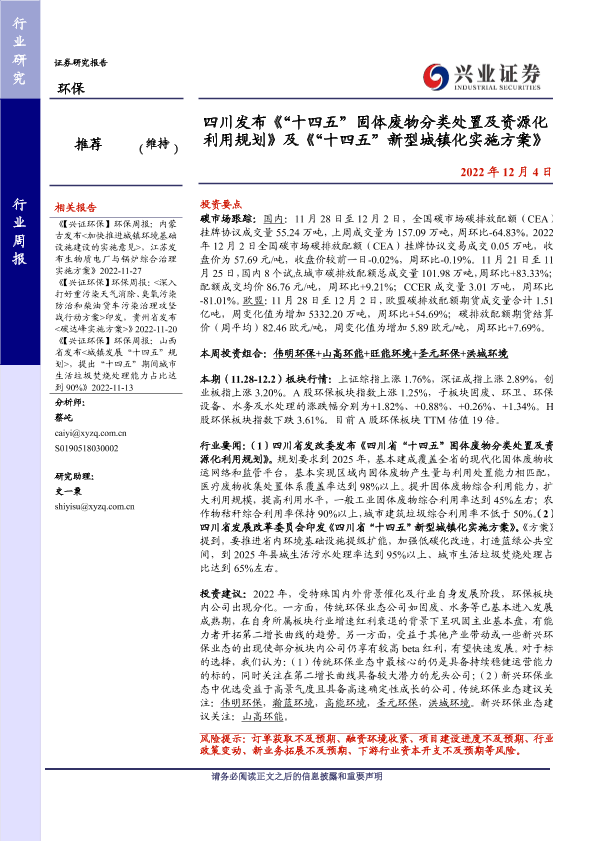 【兴业证券】【20221204】四川发布'十四五'固体废物分类处置及资源化利用规划及新型城镇化实施方案-10页