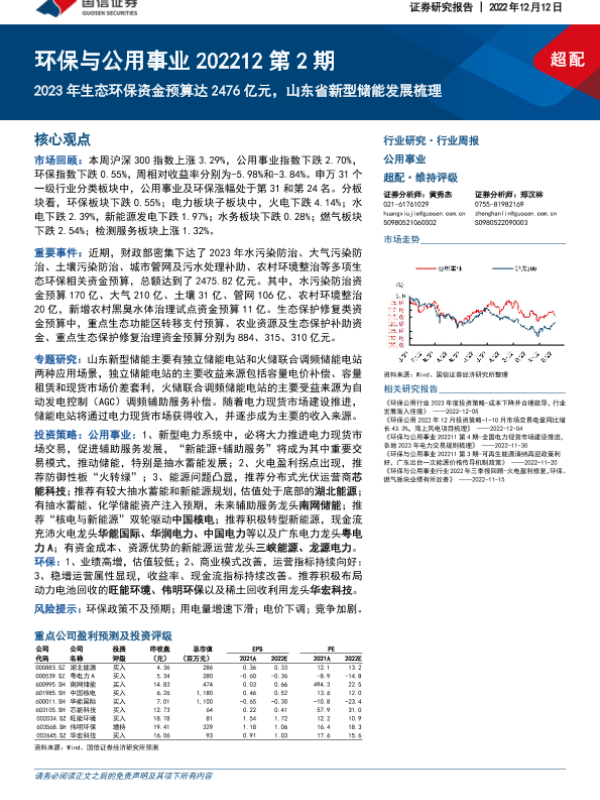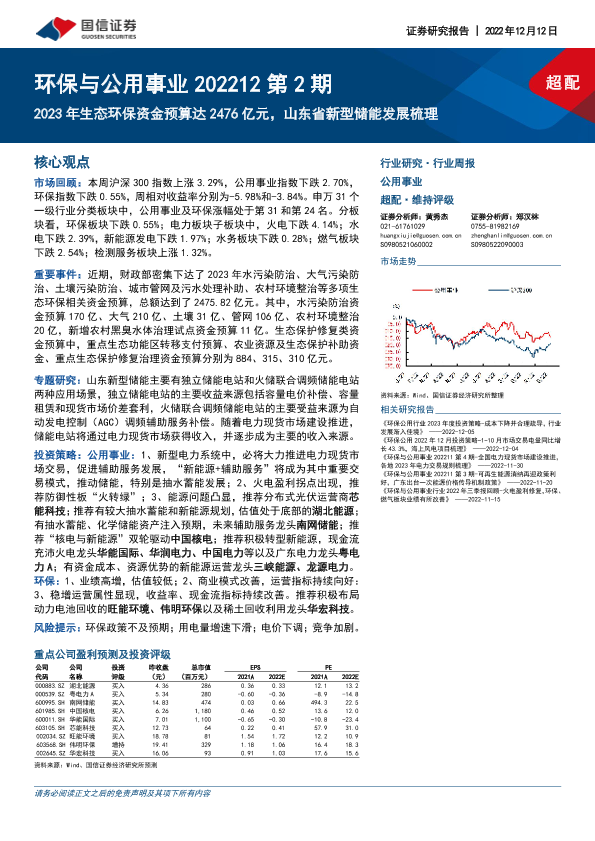 【国信证券】【20221212】2023年生态环保资金预算达2476亿元,山东省新型储能发展梳理-31页