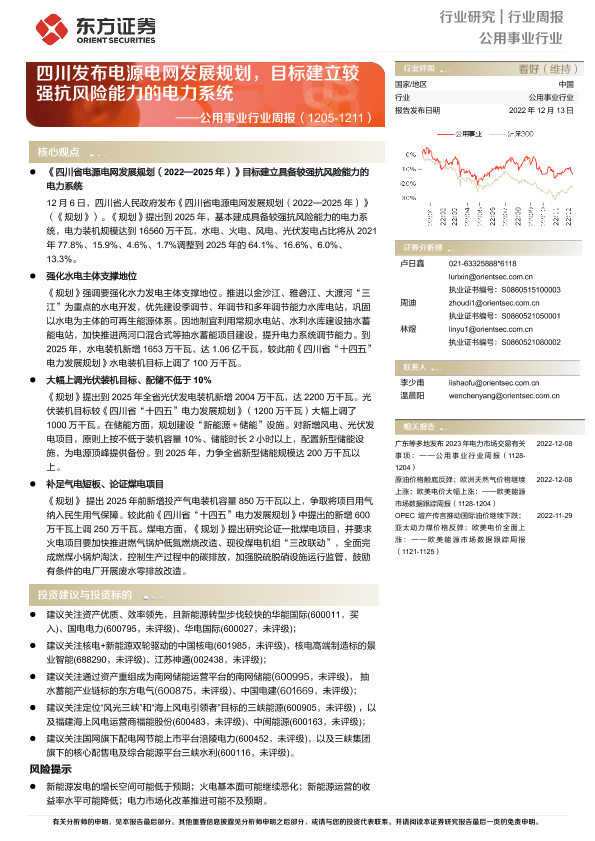 【东方证券】【20221213】四川省电源电网发展规划:目标建立较强抗风险能力的电力系统-14页