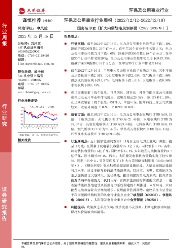 【东莞证券】【20221218】环保及公用事业行业周报:国务院印发《扩大内需战略规划纲要(2022-2035年)》-12页