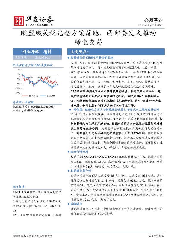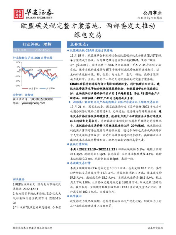 【华安证券】【20221225】欧盟碳关税完整方案落地,两部委发文推动绿电交易-14页