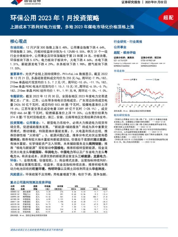 【国信证券】【20230102】2023年1月投资策略:上游成本下跌利好电力运营,多地2023年煤电市场化价格顶格上涨-30页
