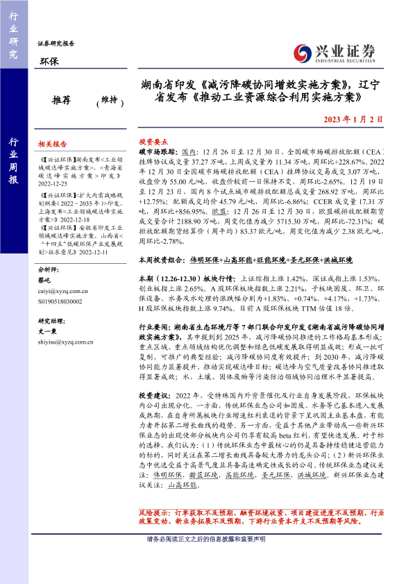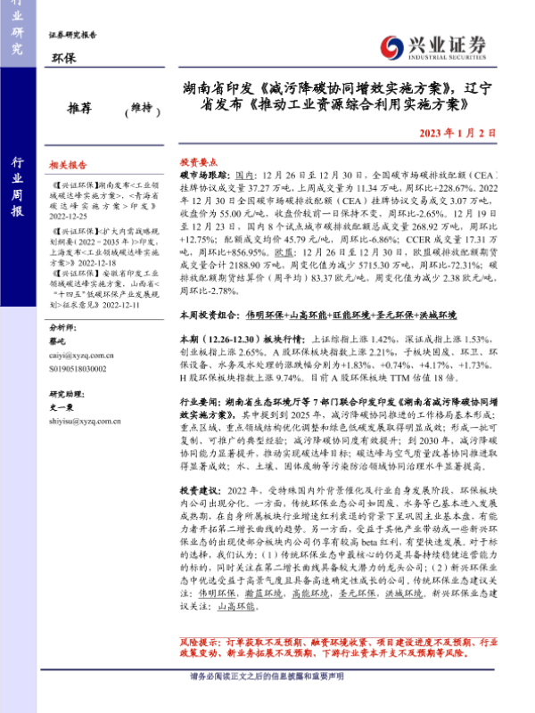 【兴业证券】【20230102】湖南省印发《减污降碳协同增效实施方案》,辽宁省发布《推动工业资源综合利用实施方案》-11页