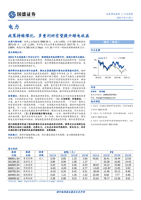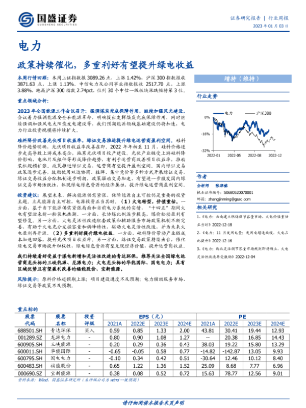 【国盛证券】【20230103】电力行业周报:政策持续催化,多重利好有望提升绿电收益-13页